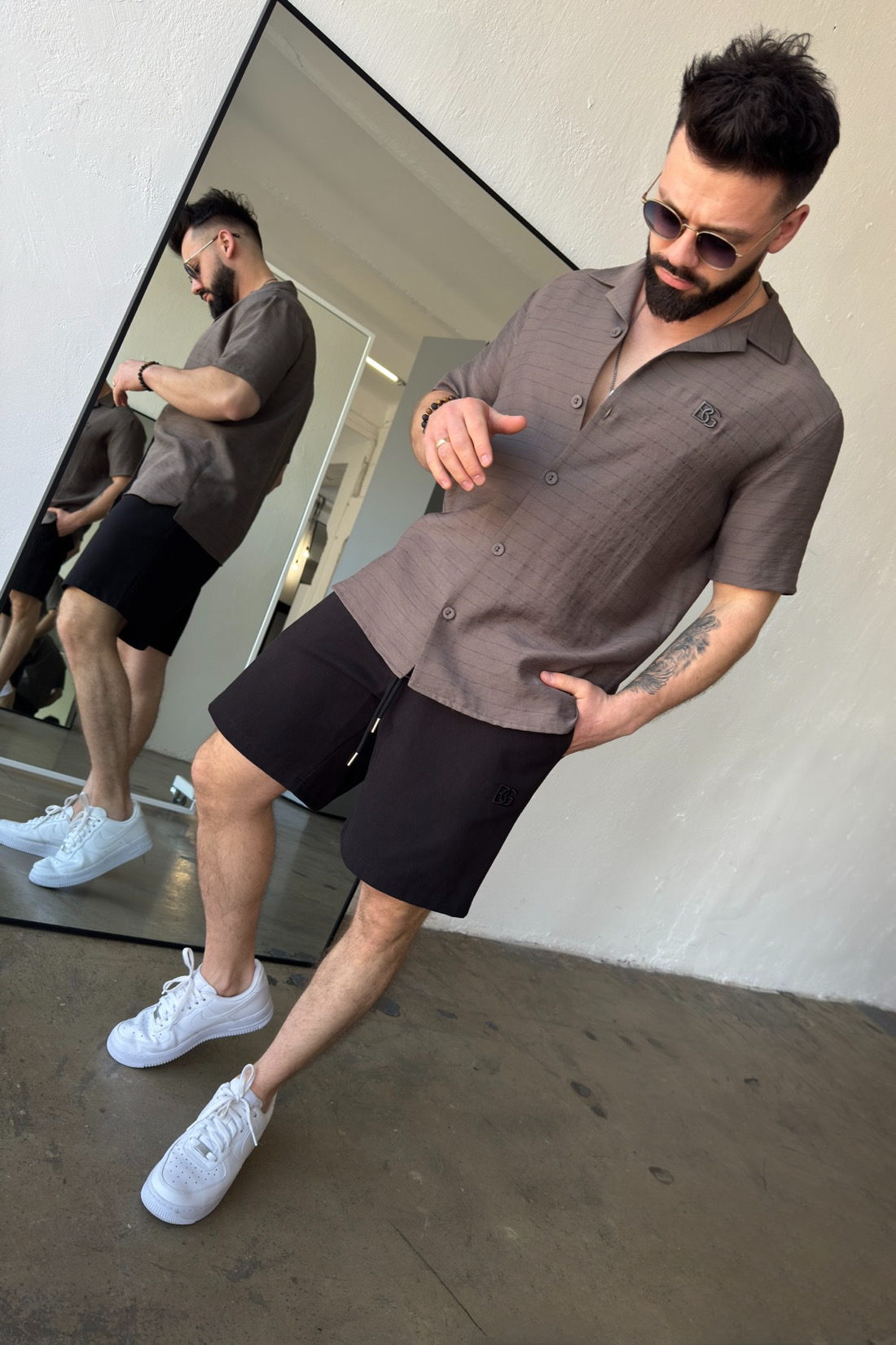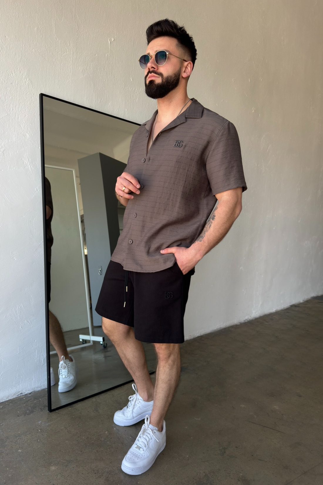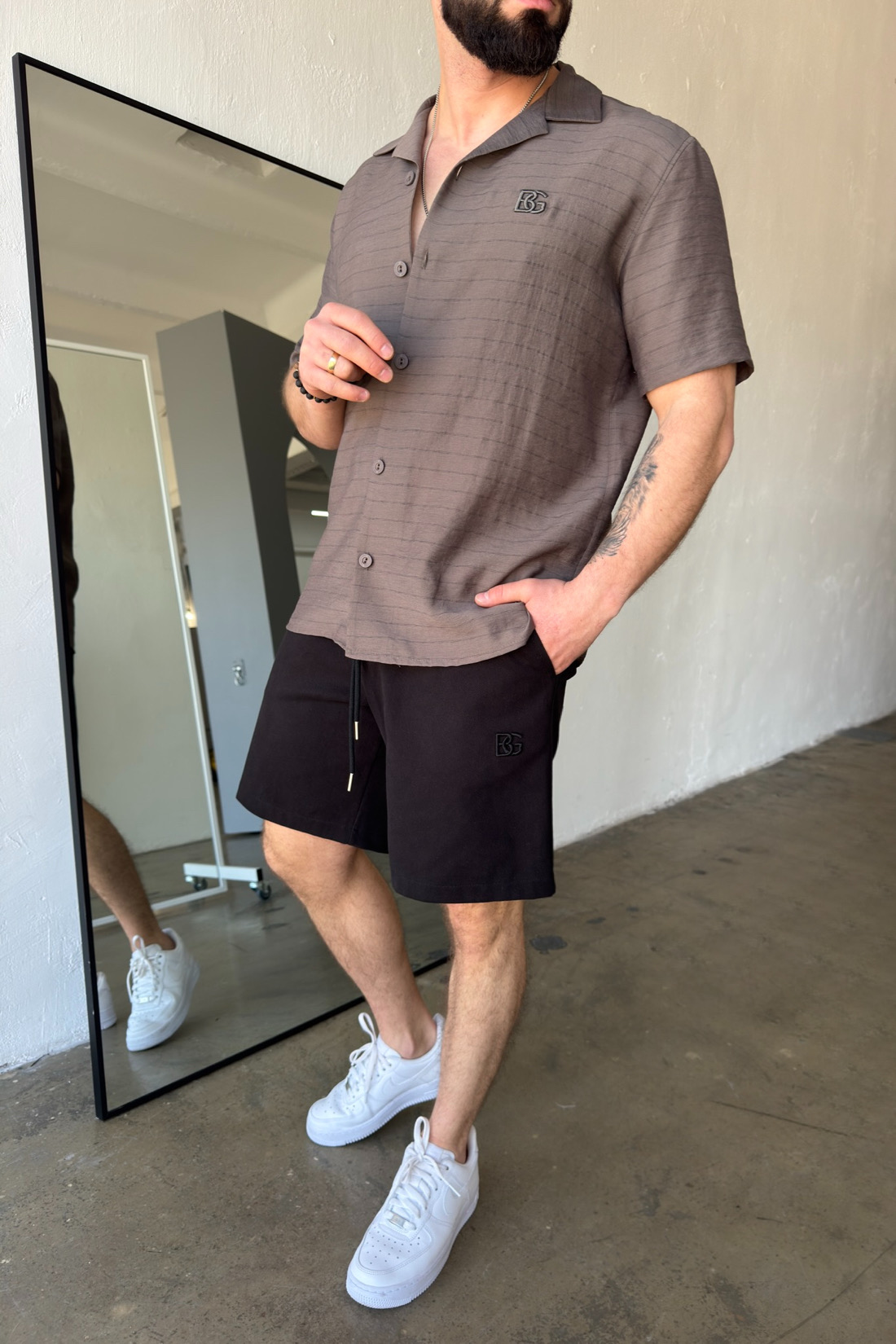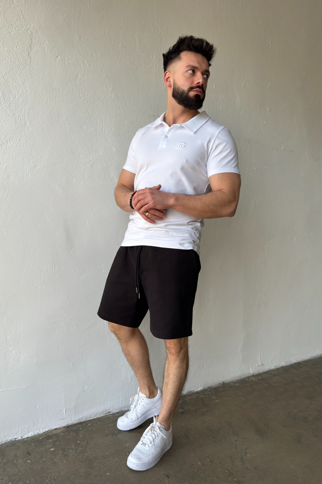 Opis produktu: Szorty męskie BG CONTINENTAL z wysokiej jakości tkaniny bawełnianej. Klasyczne szorty z haftowanym logo marki BG Brandenburg Couture na nogawce. Kieszenie w boku oraz gumka ze sznurkiem w pasie.