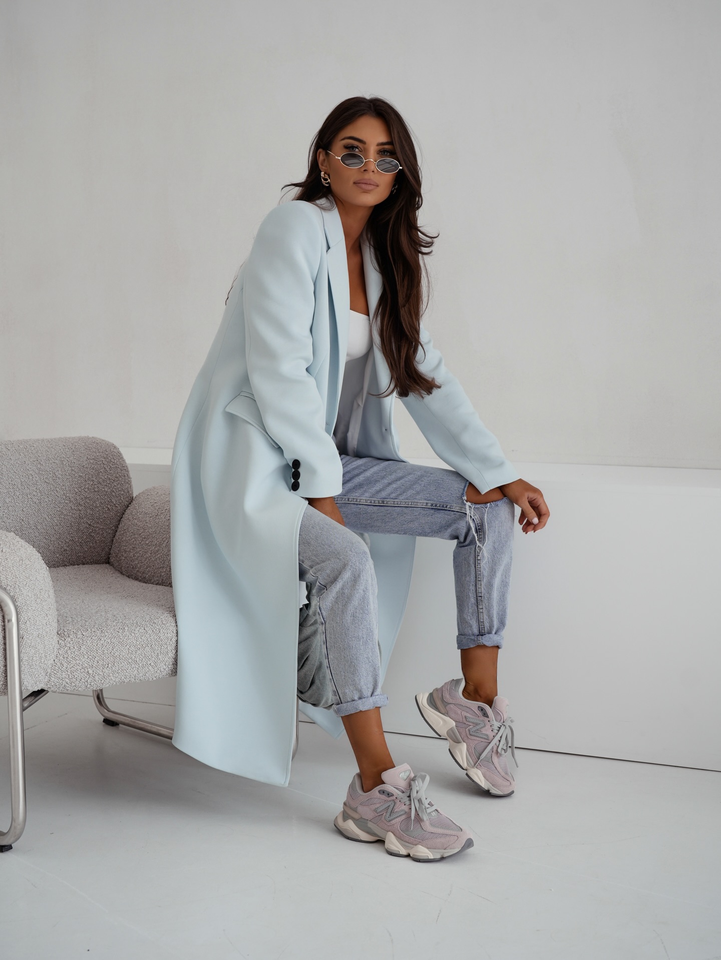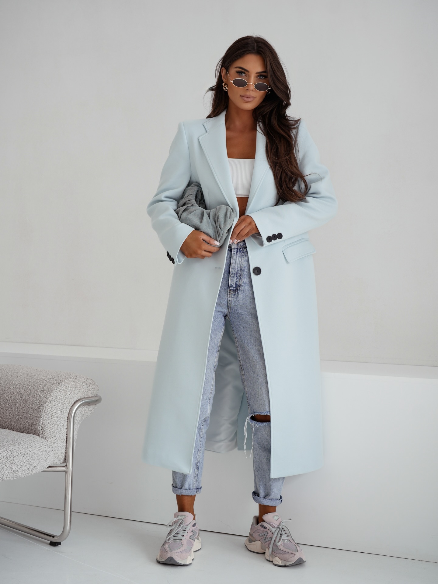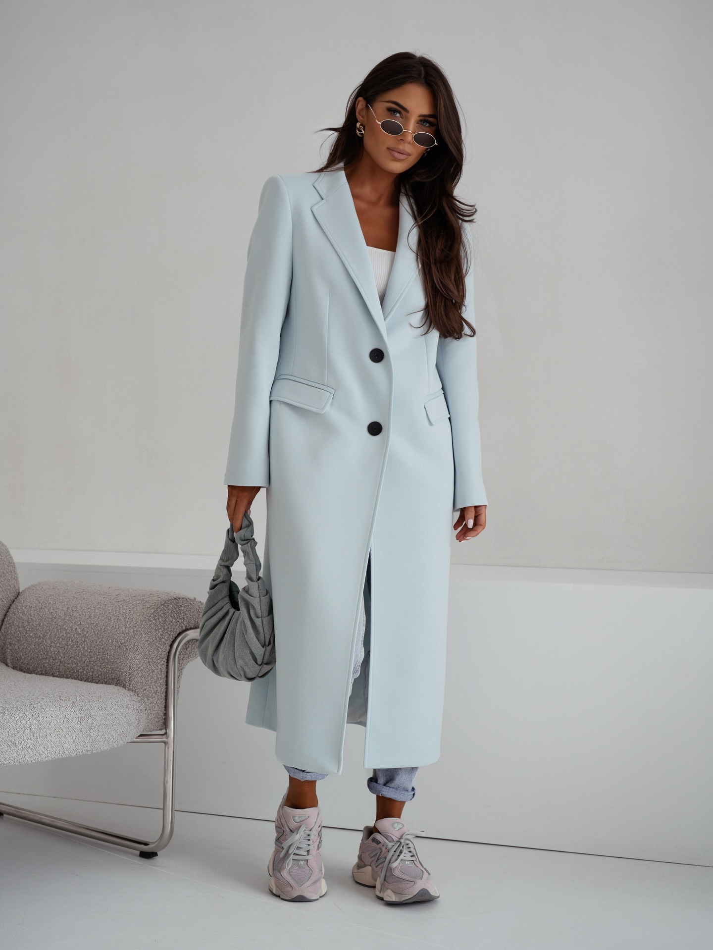 Wiosenny płaszcz damski Me Gusta błękitny